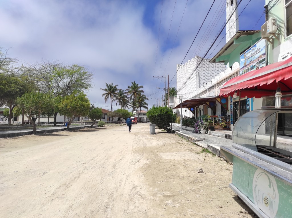 Après 10 jours sur notre belle Isabela, l’activité humaine et l’agitation de Santa Cruz nous semblent encore plus importantes qu’avant. 10 jours ont suffit à nous habituer à ce calme, rare dans ce monde. Nous retrouvons également ce qui nous parait aujourd’hui l’opulence et l’accessibilité ridicule du consommable. A Isabela, en cette période de crise, les commerces, les restaurants et donc les particuliers, ne sont ravitaillés qu’une fois par mois par bateau. Lorsque la livraison arrive, c’est Noël, ensuite, quand il n’y a plus, il n’y a plus. La solidarité entre les habitants se révèle alors, avec beauté. Gorges un peu irritées, nous avons demandé un pot de miel à un épicier. Confus, il nous répond ne plus en avoir dans ses stocks. Il n’a pas hésité une seule seconde à aller chercher son pot de miel personnel pour nous verser la moitié dans un gobelet.