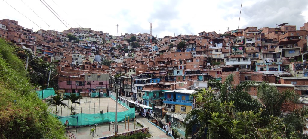 Aujourd’hui le quartier arbore une toute autre allure. Le tourisme se développe et permet à ceux qui le souhaitent de vivre du tourisme, grâce aux financements de cours d’anglais par la municipalité. Même si on observe une tendance à la « patrimonialisation de la violence » par le tourisme (énormément de produits dérivés autour de la Comuna 13 et de son histoire violente), il faut reconnaitre que le quartier le plus dangereux du monde il y a quelques années, nous parait aujourd’hui drôlement sécure. Les investissements publics ont aussi permis la création d’un escalator sur plusieurs niveaux pour permettre aux plus pauvres, habitants en haut, de rejoindre plus rapidement le début des réseaux de transport public et ainsi d’accéder à la ville.