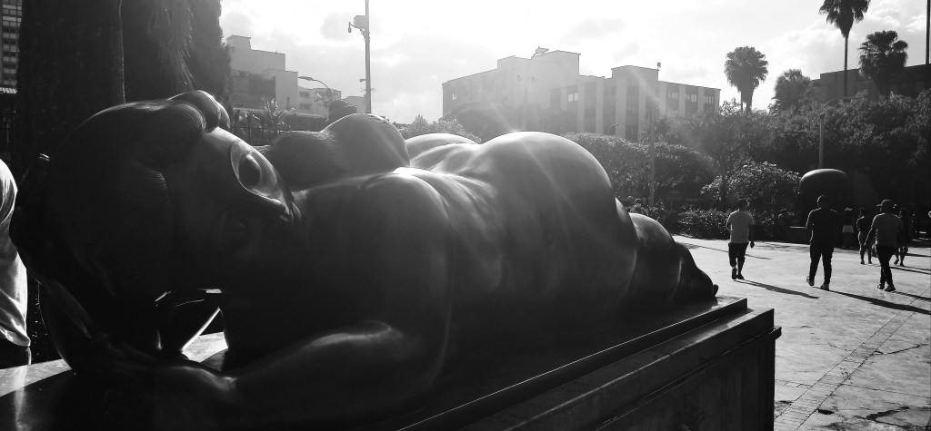 La découverte du reste de la ville a été cependant plus laborieuse. Allant de la simple activité touristique à l’achats de matériel, les astres, pourtant alignés, ne semblaient pas en phase avec nous. A notre grande déception, le Musée de la Memoria, prometteur d’enseignements-clés dans la compréhension de l’histoire de la Colombie est fermé en raison de la pandémie. Impossible de trouver le Marché Tranvia dont on nous avait vanté les délices. Notre quête de matériel pour notre GoPro s’est transformée en véritable chasse au trésor. Nous nous rendons compte que lorsque nous demandons conseil aux colombiens, nous obtenons souvent de fausses indications. Leur sens du service les empêcheraient-ils de nous répondre simplement « No sé. » ? Ainsi nous parcourons les rues bondées, assommés à coup de « A la orden ! ». Ça grouille, ça se bouscule, ça parle fort. Des enfants chantent dans la rue sous le regard de leurs parents en espérant récolter quelques pesos, des hommes et des femmes se font un triste festin dans les poubelles éventrées et d’autres errent à la recherche d’un touriste imprudent. C’est le cas de cette jeune fille, menottée, encerclée par la foule moralisatrice, rêvant d’un lynchage de la voleuse sur la place publique ou bien de capturer l’image d’une bavure policière. Nous en profitons pour faire le tour de la Plaza Botero, libérée. Les statuts de l’artiste représentent des humains et des animaux obèses dont l’expression du visage et les accessoires ne laissent entrevoir autre chose que le quotidien. Mais « le plus colombien des artistes colombiens » et qui plus est, l’un des rares artistes à connaitre le succès de son vivant, rectifie : « Gros mes personnages ? Non ils ont du volume, c’est magique, c’est sensuel. »
