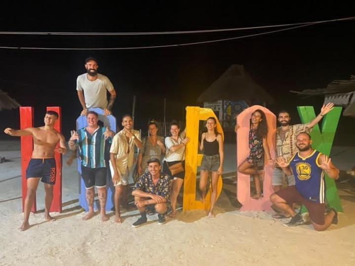 Nous pensons à Gaby, l’argentine fêtarde bloquée sur Holbox à cause du Covid et l’annulation de ses billets d’avion, en volontariat avec nous au camping, à Troy, l’australien déjanté voyageant depuis plus d’un an avec Jess, la française libre et légère, qui voyage depuis des années en quête d’aventure et de job, à Amine, jeune français à l’éloquence et à la détermination de vie incroyable, dans le début de son premier voyage sans ses parents avec Yacoub, son meilleur ami au cœur sur la main et à la bienveillance surprenante, à Damien, notre boss avec qui nous connaitrons les meilleurs spots de fête et que nous accompagnerons dans ses plans business, à Sandrine, ancienne infirmière à Monaco qui a décidé de tout plaquer pour approfondir ses expériences spirituelles et sa liberté, à Ajith, un musicien sri lankais vivant en Suisse et ayant quitté son job en assurance pour laisser sa confiance et son ouverture le mener vers de nouveaux chemins, à Leandro, argentin en voyage prenant du temps pour lui et pour partager ses expériences spirituelles dans la douceur de ses paroles, à Reynald, français travaillant en Suisse comme manager, qui, comme souvent, fait une pause dans sa vie pro pour se laisser aller à l’autre aspect de sa vie, plus calme, le voyage, qu’il fait avec Sophie, sa conjointe suisse, éducatrice spécialisée à la douceur marquante et au rire communicatif, à David, Manuella, une famille de français qui ont vendu leur commerce et qui sont dans le début de leur voyage avec leur enfants de 9 et 12 ans, Leo et Alex, et prêts à se laisser modifier par le voyage, à Julie, une autre française, très douce, voyageant en travaillant dans le marketing social et digital, à Dan, un anglais reconverti dans le bitcoin qui a quitté son job et s’attelle depuis des années à la méditation et à son bien-être, lui aussi au début de son périple, à Lino et sa chérie, jeunes français de 21 ans ayant travaillé pendant deux ans pour se payer un voyage autour du monde qui marquera sans doute le reste de leur vie, à Tarik, turc en vacance repérant des spots pour se convertir dans le nomadisme digital, à Tina, allemande ayant quitté son job d’ingénieure pour lancer son commerce de tissus ethniques et équitables et donc à la rencontre d’artisans Mexicains, à tous ses espagnols en transition à Holbox avant de pouvoir partir ramasser la weed en Californie, à tous les autres qu’on oublie mais qui ont su apporter leur atmosphère et leur folie…