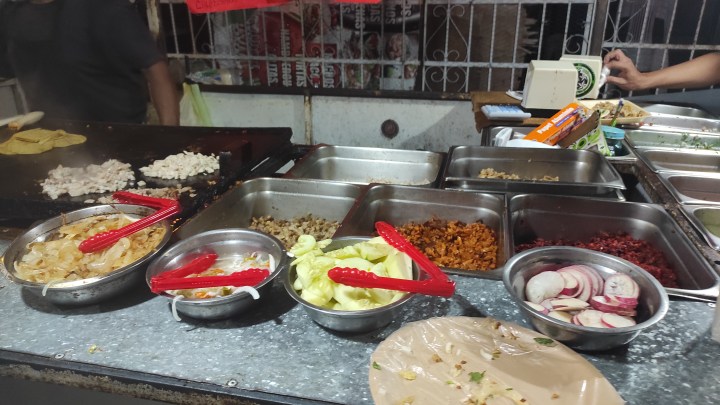 De retour dans le vrai côté de la ville, celui des cancunenses, nous passons par El Parque de las Palapas, petite place populaire où les food-trucks proposent des mets typiques et populaires. Nous goutons les tortas et les marquesitas que nous pouvons décrire comme des crêpes croustillantes garnies de Nutella et de fromage râpé. Comme la veille, nous restons un moment assis à observer les passants dans cette ambiances beaucoup plus calme et simple que la folie oppressante de la zone hôtelière. Les familles déambulent un elote dans une main (épi de maïs recouvert de fromage), une glace ornée de bonbons dans l’autre main.