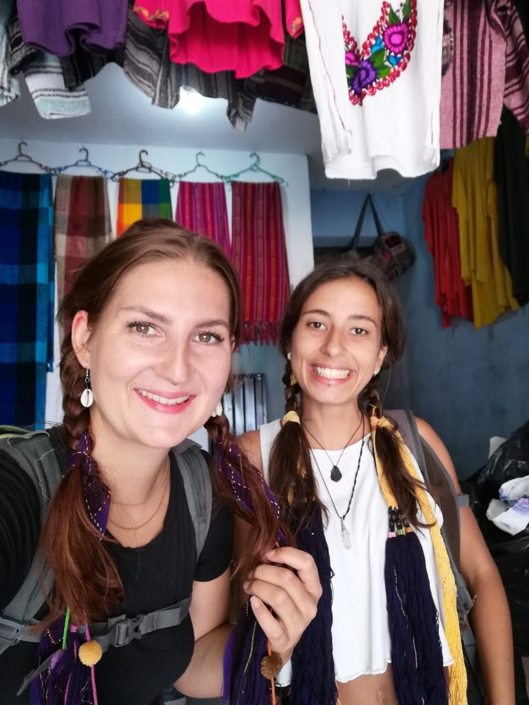 Dès mon 2ème jour en solitaire, je retrouve Tine ma copine allemande, rencontrée dans le vortex Holboxeño, dans un petit resto indonésien où l’on mange sur des chaises à hauteur d’enfant. Elle me parle de sa mission pour les prochains jours : partir à la rencontre d’artisans pour développer son nouveau business. Tine a créé son entreprise, Chumba Changu, grâce à laquelle les européens pourront acheter directement sur son site des vêtements et des tissus de décoration d’intérieure venant de contrées lointaines et répondant à des critères non-négociables : les produits doivent être faits à la main et les artisans doivent être rencontrés en personne dans leur atelier. Tine les questionne alors sur les techniques et matières premières utilisées, sur leurs conditions de travail, sur le temps passé sur chaque type de produit etc. Elle a prévu de partir dés le lendemain dans des villages alentours à la recherche de ces créateurs cachés et je décide instantanément de l’accompagner dans cette aventure. C’est ainsi que nous nous retrouvons, le jour suivant, à une petite trentaine de minutes de San Cristobal, dans une ville appelée San Juan Chamula. Nous passons de boutique en boutique, on questionne, on insiste. On veut rentrer en contact avec les créateurs des articles vendus mais les commerçants semblent réticents à l’idée de nous aider. Je dois prendre le rôle de traductrice entre Tine et les vendeurs et je me sens un peu maladroite dans cet exercice. Je ne sais pas vraiment comment m’y prendre pour négocier un contact…