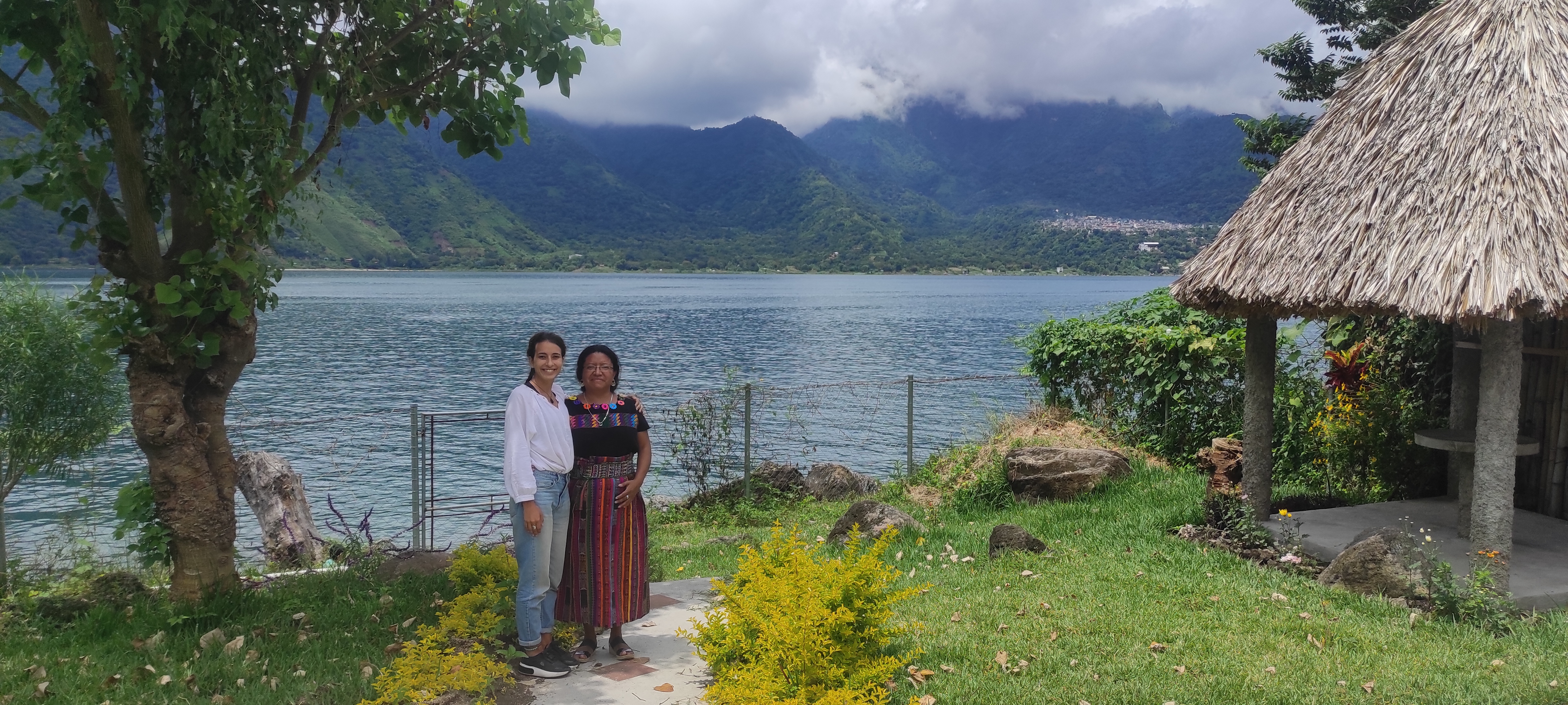 Nous nous sommes ensuite accordés une semaine de cours d’espagnol dans cette école où des petites paillotes en bord de lac font office de salles de classe. Le lieu illustre parfaitement le nom maya de San Pedro : Tz’unun ya’, qui est la juxtaposition de « colibri » et d’« eau ». Les premiers jours nous partageons les récrées, durant lesquelles on nous sert d’excellents mets guatémaltèques, avec la famille Mazel, Sophie et Renald puis nous y rencontrerons Inès et Adrien, un couple de voyageur français au rythme lent et inspirant. Nous accrochons tout de suite avec nos professeurs respectifs, Pedro pour Antho et Magdalena pour Cris. Nos niveaux d’espagnol atteints au bout d’un an de voyage nous permettent de tout de suite de progresser à travers des conversations. En effet, la majorité des cours ressemblait plus à un échange culturel qu’à une leçon, ce qui nous a permis d’apprendre chaque jour énormément sur les traditions et croyances mayas, sur la culture de San Pedro, sur les rivalités entre villages ou encore sur la politique… Nos professeurs ont su nous apporter un regard critique sur leur propre pays, un témoignage authentique sur la vie à San Pedro, leur vision sur l’avenir des Guatémaltèques et nous enseignent même des mots dans leur langue native, le tzutujil. Chaque matin nous avions ainsi le sourire aux lèvres sur le chemin de l’école, ressortions chaque midi enrichis de tous ces apprentissages et réalisions nos devoirs le soir avec plaisir.
