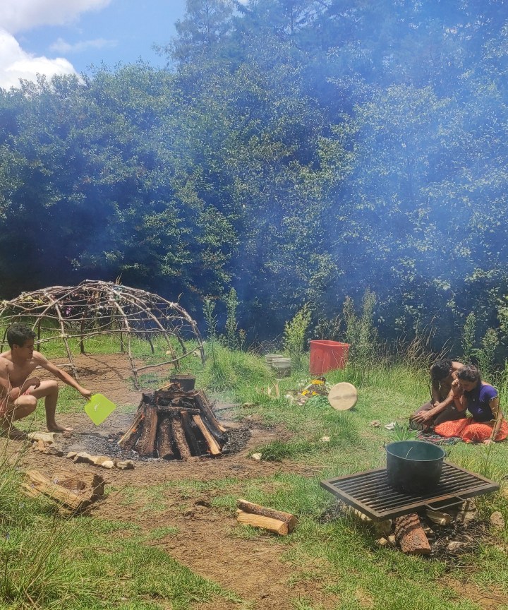 Cris médite à San Cristobal lors d’une cérémonie de Temazcal (Mexique)