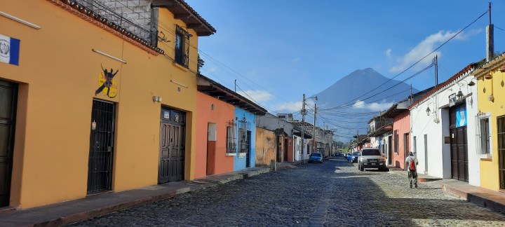 Nous passons ainsi 3 jours à Antigua à apprendre à les connaitre davantage et à découvrir cette petite ville coloniale. Nous reconnaissons sa structure qui, comme beaucoup de villes coloniales d’Amérique latine, est dite hippodamienne ; elle est constituée de rues qui se croisent en angle droit autour d’une place centrale arborée et très vivante. Les habitations sont basses et colorées et les édifices sont élégants. Nous croisons quelques ruines de charme témoignant des tremblements de terre de 1773. Une ville unique qui laisse apercevoir depuis ses rues pavées, l’intarissable Volcan de Feu, qui, moins d’une semaine après notre ascension, générera une éruption provoquant une coulée de lave de 6km… La plus forte depuis 2018 qui avait fait 215 morts et autant de blessés.