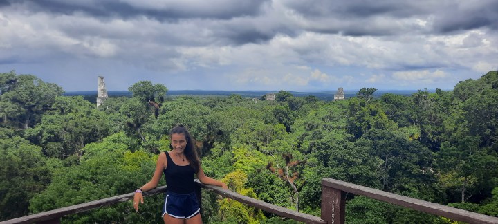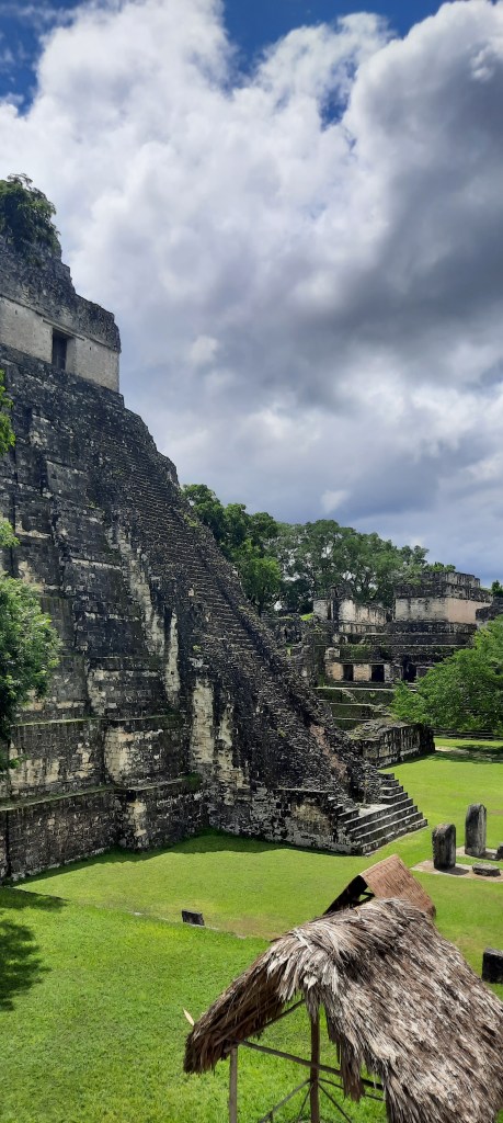 Tikal ou Ti Ak’al, qui signifie trou d’eau, est en effet un des plus grands sites archéologiques et centres urbains de la civilisation maya. Après des moments méditatifs à observer cette place de plus de 200m de long et découvrir des stèles représentant les figures du pouvoir du lieu, nous arpentons la jungle pour nous rendre au temple numéro 4, le plus haut du site et aussi la plus haute pyramide de l’époque précolombienne des Amériques. D’en haut, nous pouvons admirer l’étendue de cette jungle sauvage et découvrir, ici et là, le sommet de quelques temples-pyramides qui dépassent de cette immensité verte. Une véritable merveille.