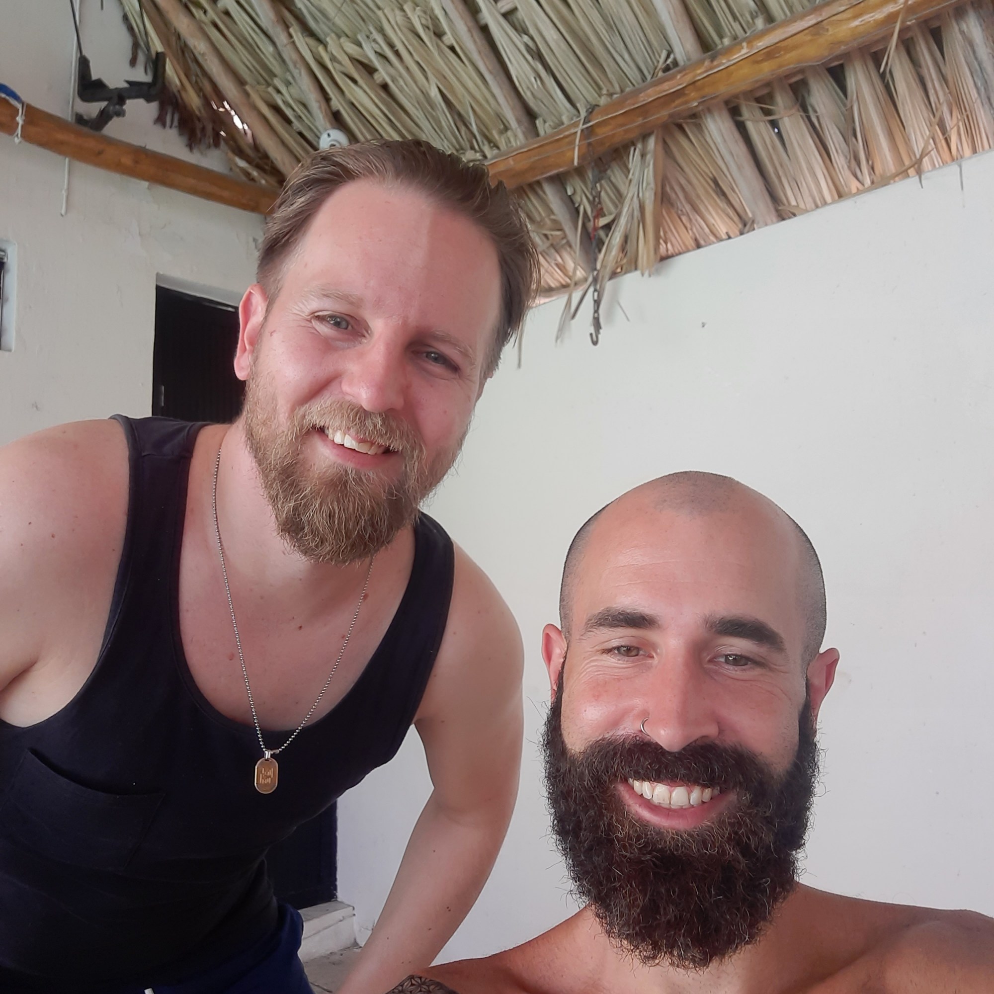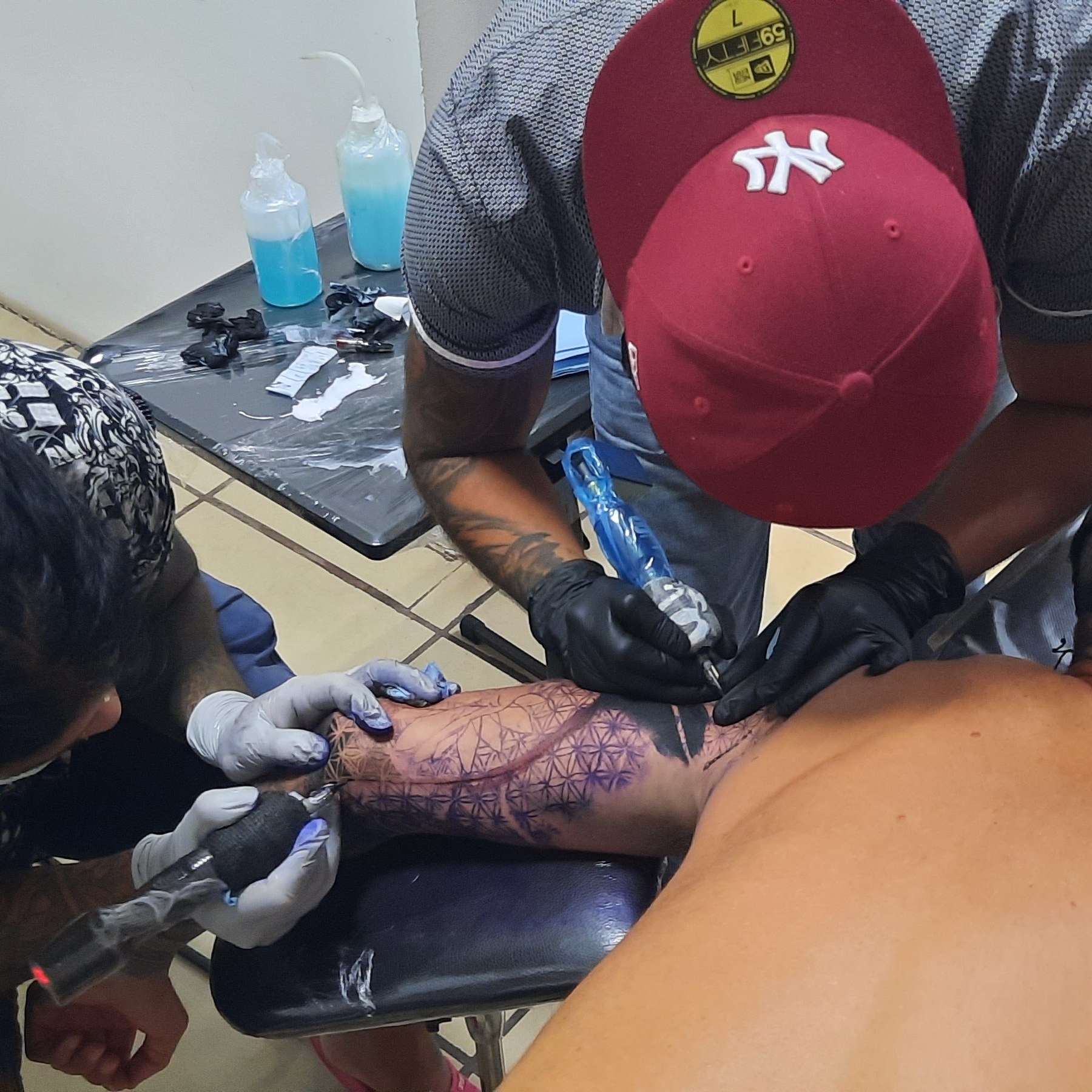 Anthony passera 4 jours complets avec son tatoueur, rencontré sur Holbox, pour construire la suite de son projet au bras et le recouvrement de son tribal. Il passera finalement 20h sous l’aiguille en trois jours et se fera même tatouer par deux artistes en même temps. La douleur est vive mais l’expérience et les échanges sont incroyables et annihilent la souffrance ressentie.