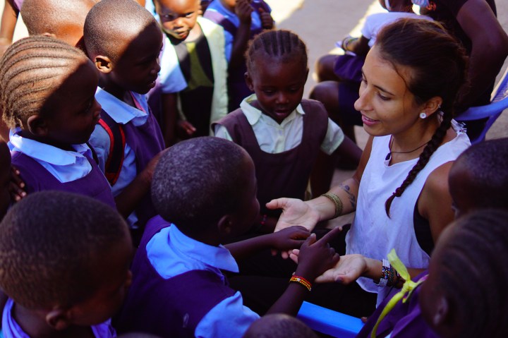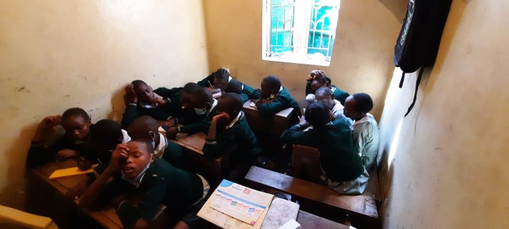 Heureusement, l’arrivée des 5 autres volontaires en fin de journée vient briser cette ambiance étrange. Nous faisons ainsi la connaissance de Clémence, une Française qui profite de son chômage pour faire de l’humanitaire, de Rita, une Française originaire de Mayotte, qui a décidé de tout quitter pour s’installer à Nairobi et d’Ursula, une Américaine de 60 ans qui fait des volontariats depuis un an aux 4 coins du monde. Le lendemain matin, nous nous réveillons avec l’excitation d’un jour de rentrée. A 10h, nous embarquons à bord du van de William direction l’école qui se situe à moins de 10 minutes de notre maison. Nous découvrons ainsi ces rues non-bitumées de Nairobi, ces commerces de fortunes et ces maisons bricolées. Nous descendons du véhicule dans une petite rue tranquille, aux portes de la petite école. William nous présente à chaque classe où les élèves se lèvent à notre passage et crient en cœur « Good Morning Teacher Cristel. Good Morning Teacher Anthony. » Arrivés à la dernière, nous comprenons que c’est celle qui nous sera attribuée. Sans briefing sur l’âge ou le niveau des élèves, ni sur le programme ou la pédagogie à adopter. C’est dans cette pièce de 6m², où sont réunis 16 élèves âgés entre 9 et 14 ans, que nous développons jour après jour, de 10 à 16h, nos compétences d’improvisation et de pédagogie agile. Et parce que 3 manuels pour 16 élèves et 2 professeurs ne suffisent pas, nous nous retrouvons à noter le moindre exercice et la moindre leçon au « tableau » (une peinture noire qui recouvre un mur poreux).