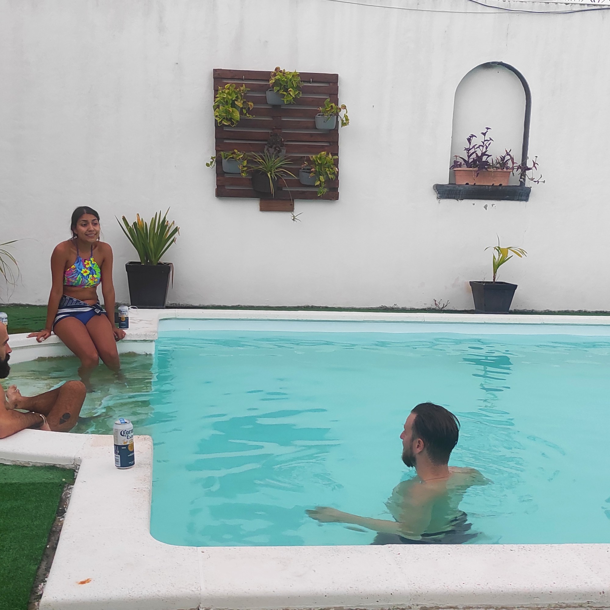 Nous partons finalement rejoindre Cancun pour passer nos derniers jours. Même si nous avons détesté cette ville lors de notre arrivée il y a trois mois, nous devons y retourner pour préparer notre sortie du continent et Anthony a RDV pour finir son projet de recouvrement de tatouage. Nous trouvons donc une maison partagée, équipée d’une belle piscine, où nous vivrons pendant 10 jours en collocation avec des mexicains, un espagnol et un canadien, tous digital nomads.