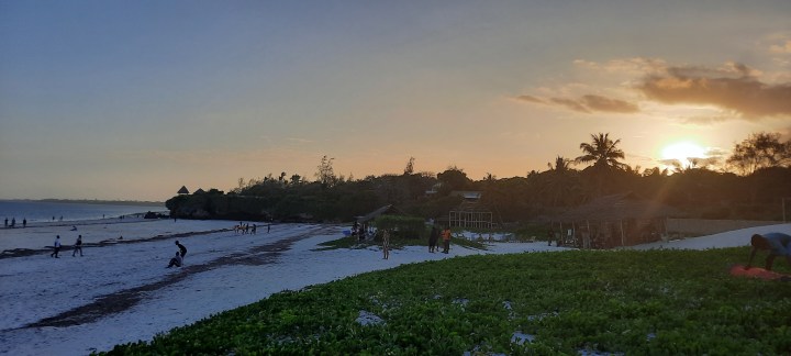 Portés par la vibration quasi révolutionnaire de nos rencontres et par la douceur des habitants de Paje, nous déambulons tranquillement dans le village pour découvrir cette atmosphère singulière : pendant que le soleil tombe, les enfants s’amusent sur les terrains de foot ensablés pendant que les hommes se réunissent devant leurs maisons blanches faites de briques localement construites pour regarder les matchs ou discuter. Les femmes, elles, au cœur du village, font sécher les algues violettes et pourpres récoltées dans la mer et qui serviront ensuite de complément alimentaire ou de médecine locale. Les touristes se font rares dans les ruelles mais nous sommes surpris du nombre de Kite-surf qui s’agitent dans l’eau au crépuscule. Des centaines de voiles colorées nous offrent un balai surréaliste dans cette eau turquoise bordée par des kilomètres de sables blanc. Oui, il fait bon vivre à Zanzibar.
