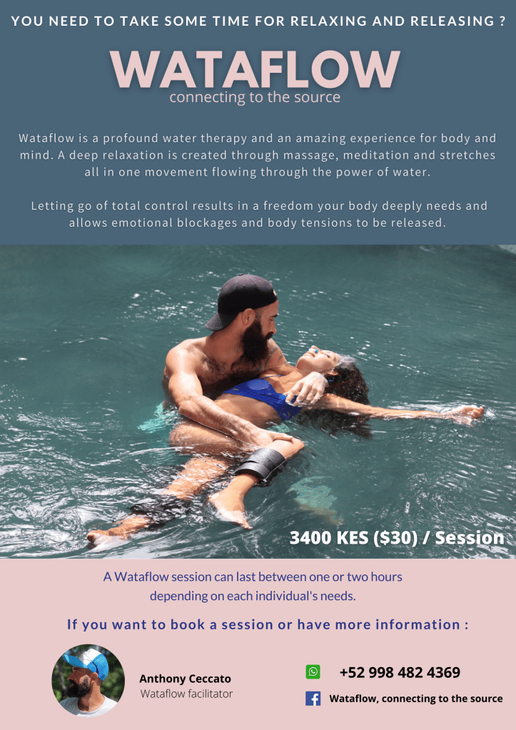 Nous avions ainsi tenté de faire profiter de ce soin à un plus grand nombre de personnes en allant déposer des affiches dans les beaux hôtels qui nous entourent. Après avoir reçu des remarques du type « les femmes musulmanes n’accepteront jamais d’être manipulées par un homme » et « les hommes n’accepteront jamais d’être manipulés par un homme », les hôtels ont fini par refuser de mettre les affiches soi-disant en raison du COVID. Nous nous confrontons une fois de plus à la fermeture d’esprit kenyane. Une affiche portant sur le bien-être rencontrera toujours du succès en Amérique Latine, et ce malgré le fait que la pratique soit encore assez inconnue.